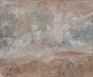 Peinture sur toile réalisée par Vincent Tripard représentant un paysage montagneux et nuageux