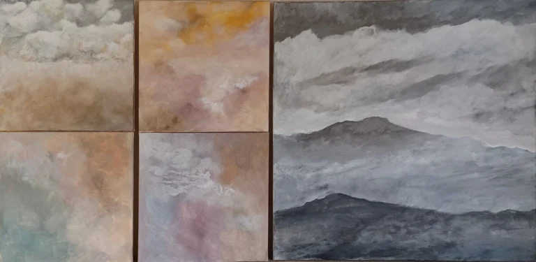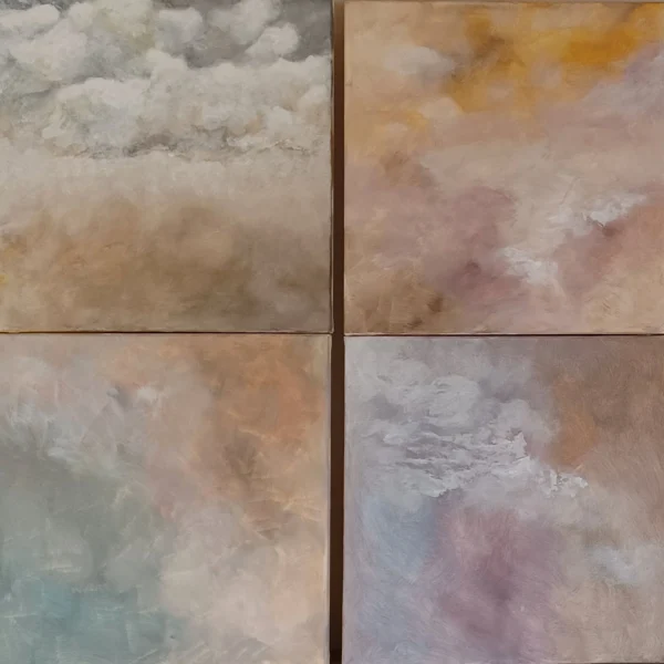 Peinture de 6 toiles réalisées par Vincent Tripard à propos d'un paysage nuageux.